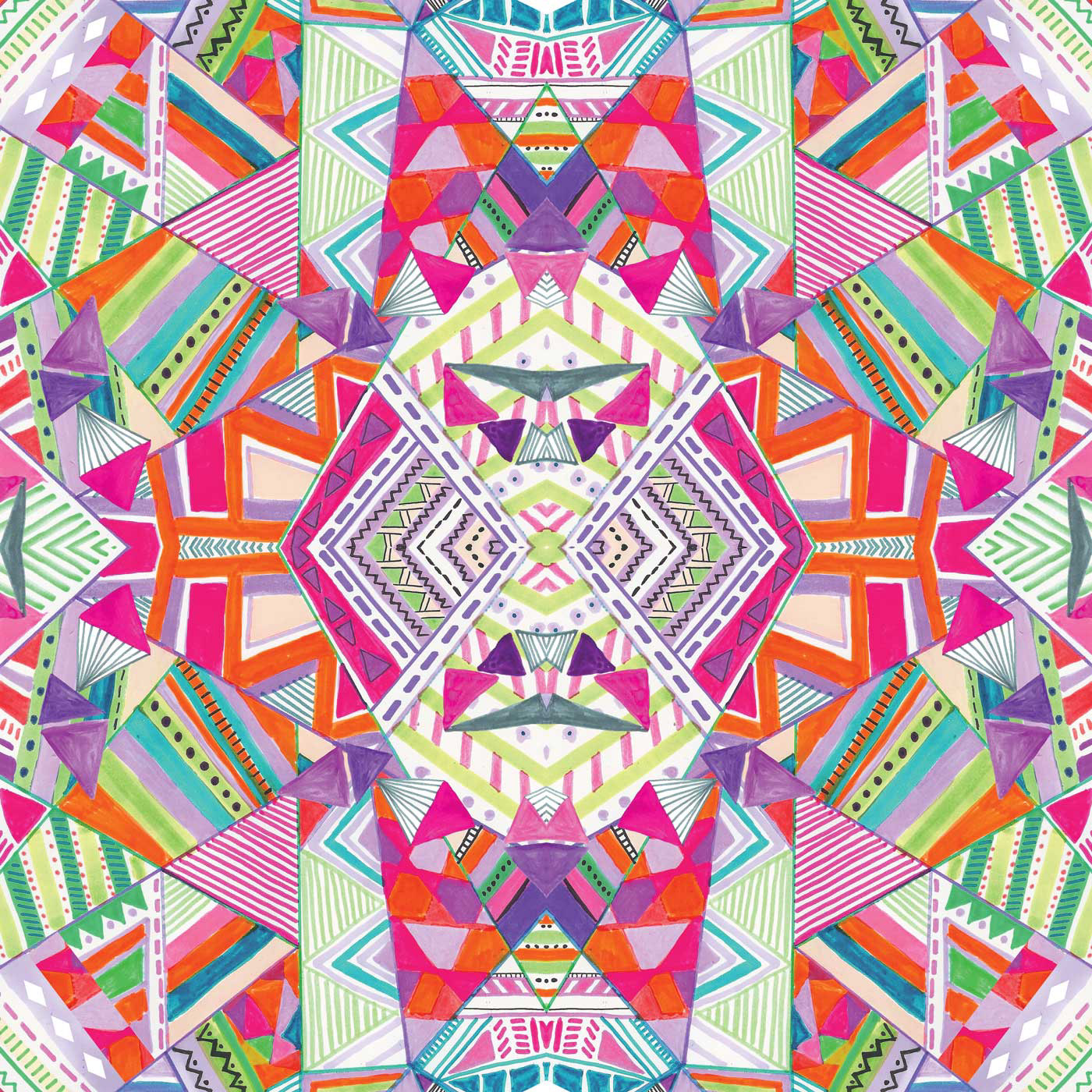 Abstract hand drawn then digitally finished kaleidoscopic design inspired by the colours and motifs of childhood Carrousel memories. Available in my society6 Shop